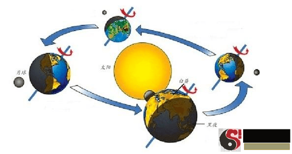 地球上一直不断自东向西匀速转动,另外又不断地绕太阳公转。地球公转的路轨是一个椭圆形的样子,而太阳光则自始至终坐落于一个聚焦点上。